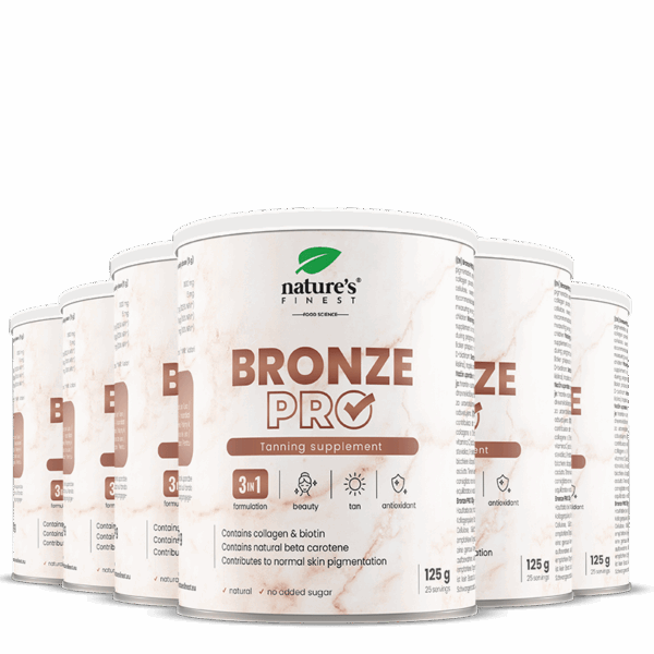 Το Bronze PRO συνδυάζει γλυκονικό χαλκό και βήτα-καροτίνη, παρέχοντας τα απαραίτητα θρεπτικά συστατικά για την υποστήριξη της παραγωγής μελανίνης, με αποτέλεσμα ένα πιο αποτελεσματικό και επιθυμητό μαύρισμα!