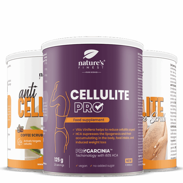 Cellulite PRO: Με το ProGarcinia™ και το εκχύλισμα κόκκινου κρασιού, αυτή η φόρμουλα κατά της κυτταρίτιδας σας βοηθά να διαμορφώσετε το σώμα σας, να καταστείλετε την πείνα και να μειώσετε την ορατή κυτταρίτιδα! Με το scrub καφέ Anti Cellulite, μπορείτε να απαλλαγείτε από την κυτταρίτιδα με εύκολο και φυσικό τρόπο. Λειτουργεί επίσης σε εξαιρετικά προβληματικές περιοχές όπου τα λιπαρά επιθέματα είναι τα πιο επίμονα.