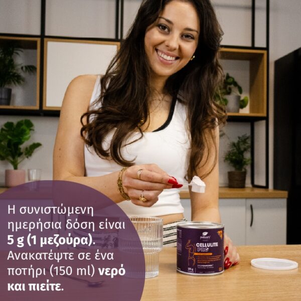 Η συνιστώμενη ημερήσια δόση είναι 5 g (1 μεζούρα). Ανακατέψτε σε ένα ποτήρι (150 ml) νερό και πιείτε.