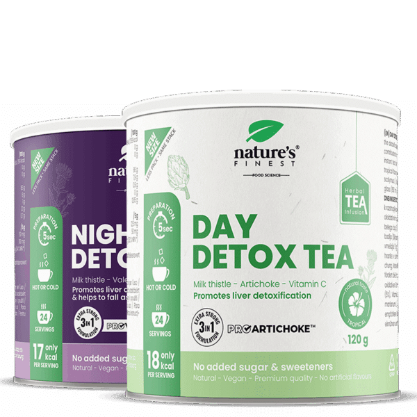 • Καθημερινό τσάι αποτοξίνωσης: Με εκχύλισμα ProArtichoke™, γαϊδουράγκαθο, λευκό τσάι και βιταμίνη C – προάγει την αποτοξίνωση του σώματος, βοηθά στην υπερβολική απώλεια βάρους, καθαρίζει το συκώτι και βελτιώνει την πέψη.