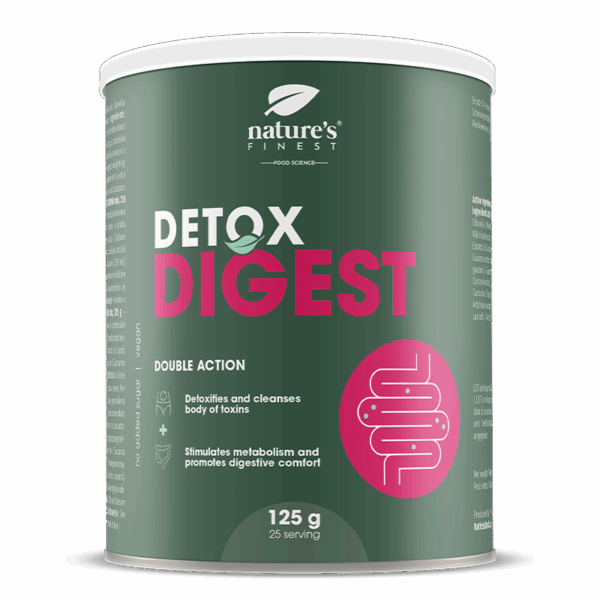 Το Detox Digest περιέχει ποιοτικά συστατικά που υποστηρίζουν την πέψη. Το γαϊδουράγκαθο ενισχύει την πέψη. Η αγκινάρα βοηθά στην υποστήριξη της ροής των πεπτικών υγρών και συμβάλλει στην κανονική λειτουργία του πεπτικού σωλήνα.