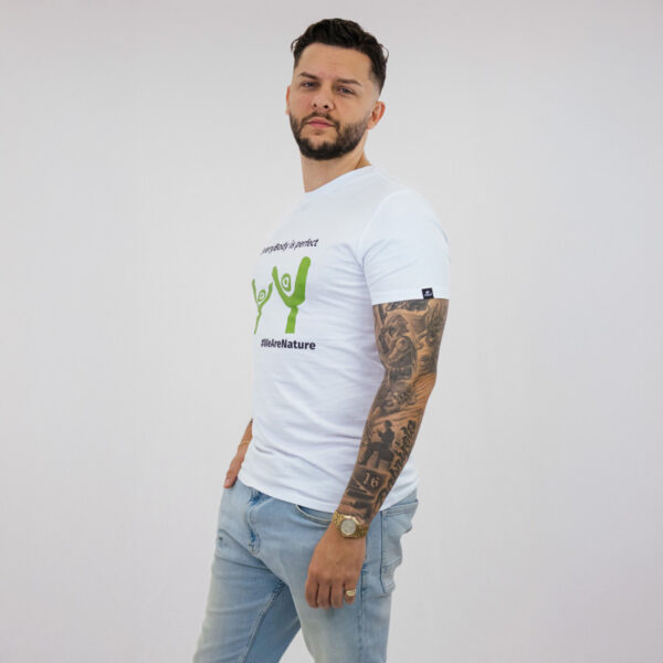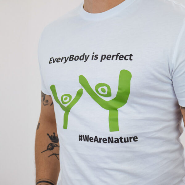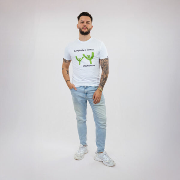 Ένα λευκό T-shirt με ένα τολμηρό, μινιμαλιστικό γραφικό δύο πράσινων φιγούρων και το μήνυμα “EveryBody is perfect.” Σχεδιασμένο για άνδρες που εκτιμούν την αυτοπεποίθηση και την αυθεντικότητα, αυτό το μπλουζάκι συνδυάζει το στυλ με ένα διακριτικό μήνυμα αυτοαποδοχής.