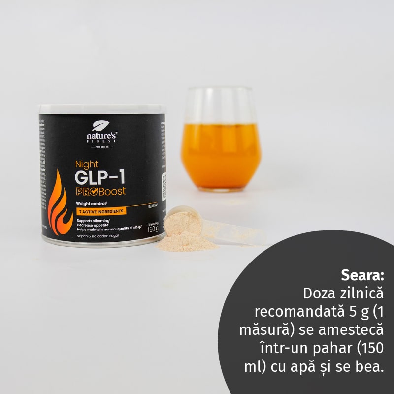Night GLP-1 ProBoost: Συνιστώμενη ημερήσια δόση 5g (1 κουταλάκι του γλυκού), αναμίξτε με ένα ποτήρι (150 ml) νερού και πιείτε. Για ακριβή μέτρηση, προτείνουμε τη χρήση ζυγαριάς.