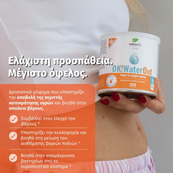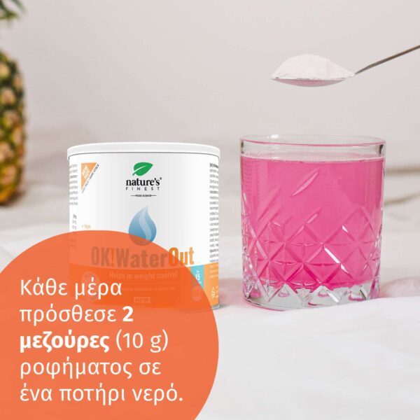 Κάθε μέρα, σε ένα ποτήρι νερό δοσομετρήστε 2 μεζούρες (10 g) του ροφήματος OK!WaterOut. Με μία μεζούρα θα καταναλώσετε 100 mg εκχυλίσματος τσουκνίδας, 100 mg εκχυλίσματος κουφοξυλιάς και 50 mg πολυκόμπι.