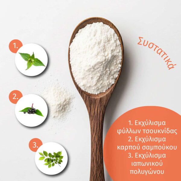 Η κατανάλωση του συμπληρώματος διατροφής συνιστάται στο πλαίσιο μιας ποικίλης και ισορροπημένης διατροφής και ενός υγιεινού τρόπου ζωής. Η συνιστώμενη ημερήσια ποσότητα ή δόση δεν πρέπει να ξεπερνιέται. Το συμπλήρωμα διατροφής δεν υποκαθιστά μια ισορροπημένη και ποικίλη διατροφή. Να φυλάσσεται μακριά από παιδιά!
