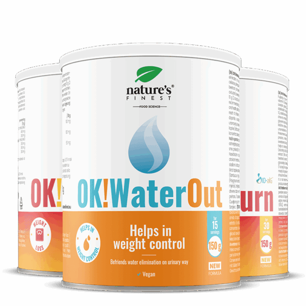 OK!WaterOut: WaterOut σε ένα ποτήρι νερό. Με μία μονάδα θα λαμβάνετε 100 mg εκχύλισμα τσουκνίδας και 100 mg εκχύλισμα από elderflower.Το ρόφημα έχει γεύση ανανά.