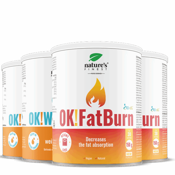 OK!FatBurn: Δύο φορές την ημέρα, αναμείξτε 5 g (1 δοσομετρητής) σε ένα ποτήρι νερό και πιείτε. Σας συνιστούμε να το πίνετε πριν από τα κύρια γεύματα. Συνιστάται η ζύγιση για την ακριβή δοσολογία.
